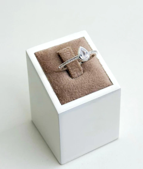 Cuidados para manter seu Anel Gota Prata sempre lindo: Limpe com uma flanela macia após o uso e evite contato com produtos químicos, perfumes ou água em excesso para conservar o brilho e a beleza da prata.